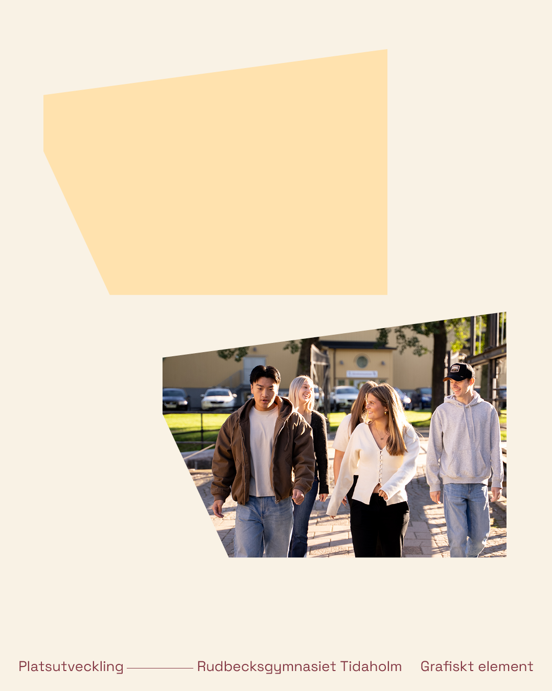 Vi har tagit fram nya färger som har sin grund i paletten för Tidaholms kommun med också för platsen Tidaholm, drivet och den positiva andan som finns i staden. Vi har även tagit fram ett grafiskt element som en bärare av den visuella identiteten, en form som är inspirerad av arkitekturen i skolans byggnad, som sticker ut och som tar lite plats.